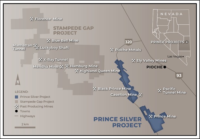 Prince Silver Corp. is a silver exploration company advancing its flagship Prince Silver Project in Nevada, USA, featuring a near-surface, historically drilled deposit that remains open in all directions. The Company also holds an interest in the Stampede Gap Project, a district-scale copper-gold-molybdenum porphyry system located 15 km north-northwest of the Prince Silver Project, highlighting Prince Silver’s focus on high-potential, strategically located exploration assets.